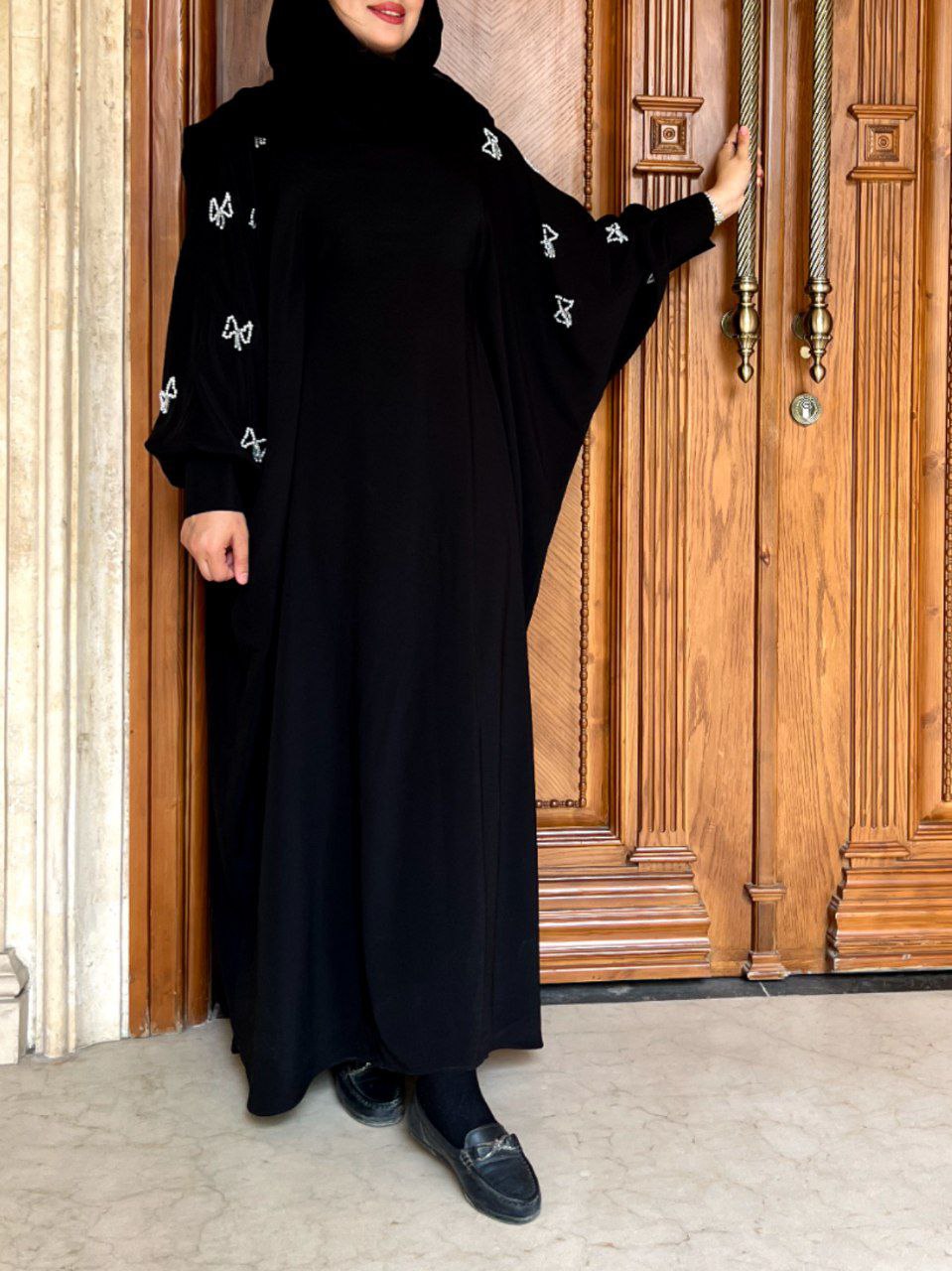 جنسش ژاکلین درجه یک فری سایز قد به دلخواه قابل سفارشه بند تنظیم دور کمر داره که میتونی نبندی و کلا آزاد باشد قسمت مچ دکمه داره و باز میشه از پشت زیپ مخفی میخوره رنگبندیشم قابل سفارشه روی کار تمام جواهر دوزیه.