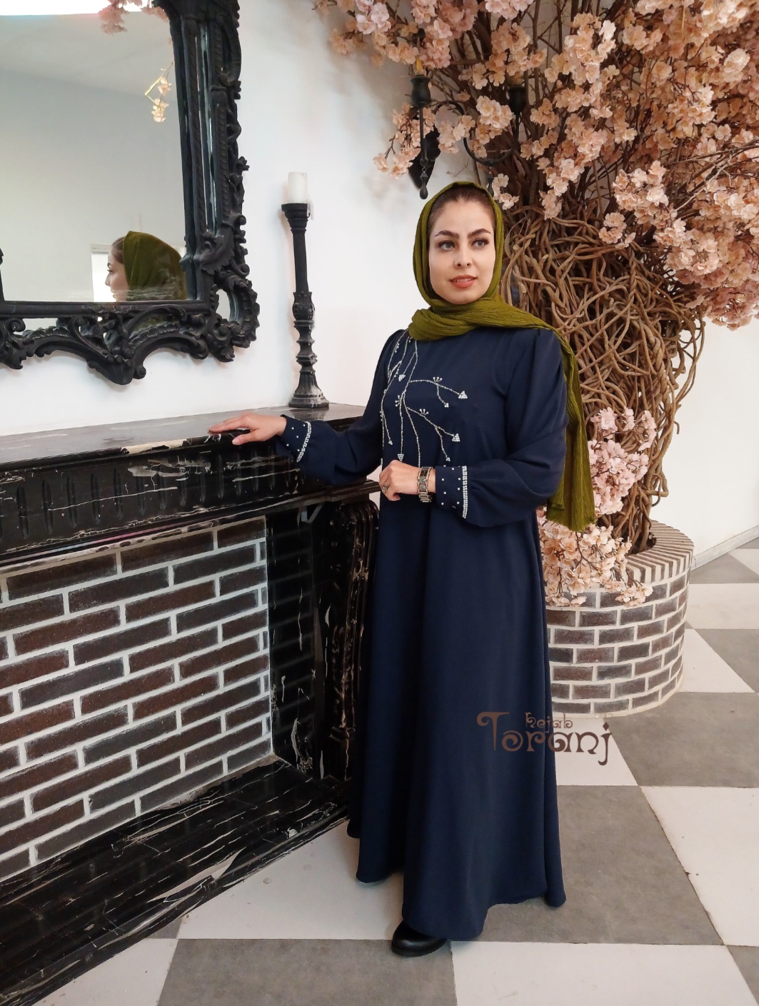پیراهن بهاره با طراحی خاص و جواهر دوزی