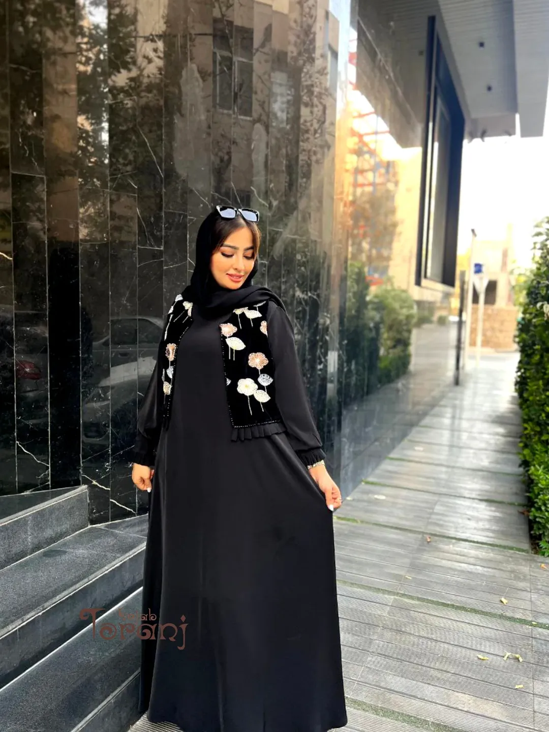 جنس پیراهن سوپر الیزه ی درجه یک. جنس جلیقه مخمل سوزن دوزی با جواهر دوزی کریستال تراش. قد به دلخواه قابل سفارشه. سایزبندی و کمربند نیز قابل سفارشه.